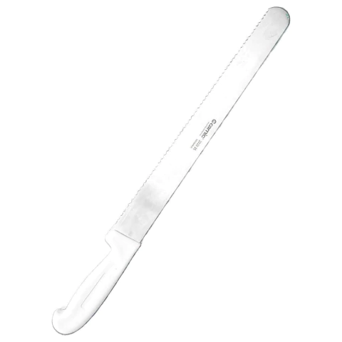 El Cuchillo Fiambrero Dentado Carnic es una herramienta de precisión diseñada para el loncheado perfecto de embutidos, charcutería y panes en el mostrador industrial. Su hoja de geometría recta y delgada, fabricada en acero inoxidable, incorpora un micro-dentado que minimiza la fricción y garantiza un corte limpio y uniforme, crucial para el rendimiento del producto. Su balance optimizado entre la hoja y el mango ergonómico reduce la fatiga del operario, manteniendo el control absoluto incluso durante jornadas extensas.